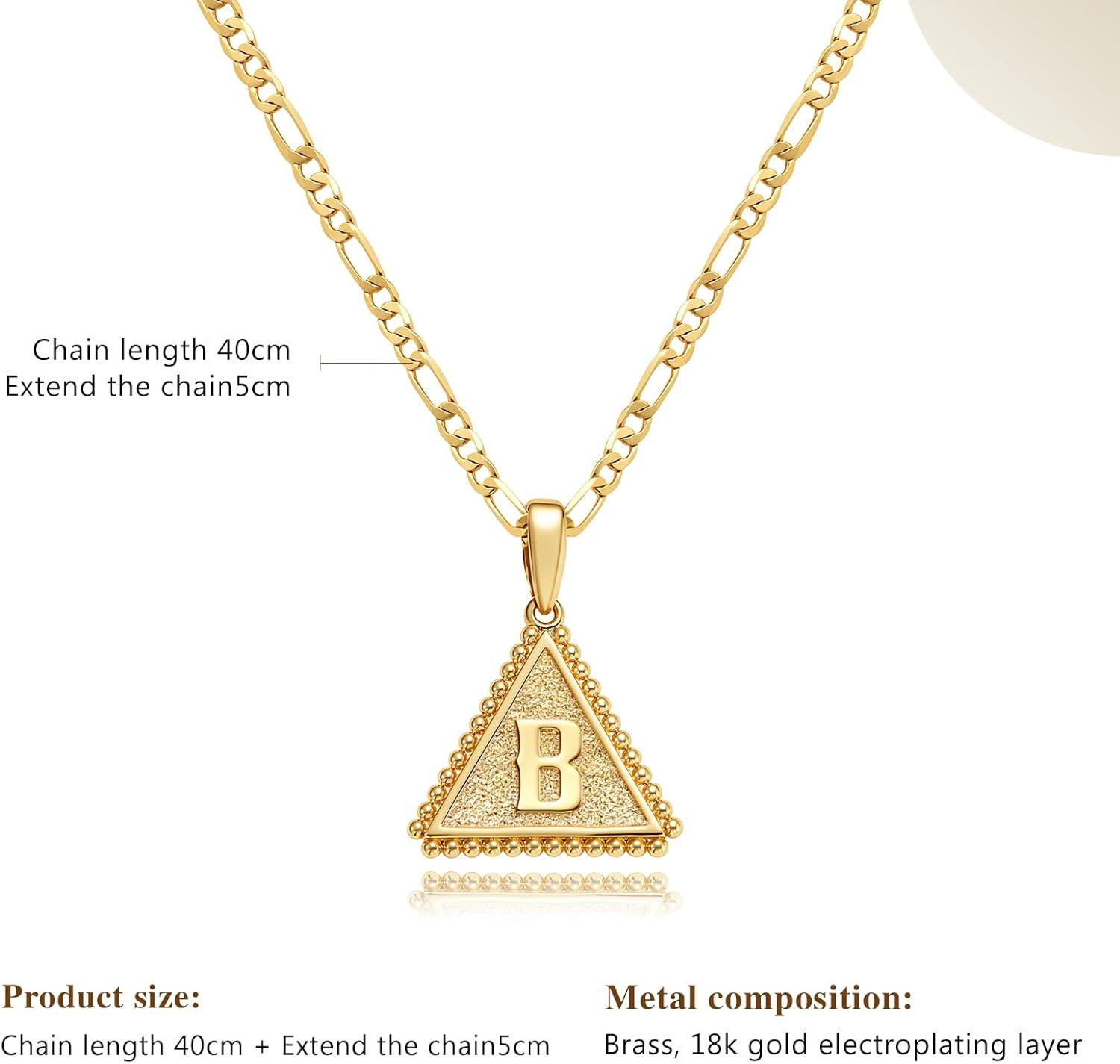 Cicy Bell Womens Initial Necklace 18k Gold Plated A-Z Triangle Letter Dainty Figaro Chain Pendant Necklace Jewelry Gifts 17.7” with 4” Extender(B-Gold)